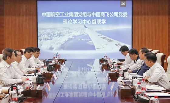为深入学习贯彻习近平总书记重要指示精神,推动党纪学习教育走深走实,坚定不移推进大飞机事业和航空强国建设,2024年5月24日,中国商飞公司党委与中国航空工业集团党组在中国商飞总装制造中心浦东基地联合开展理论学习中心组学习。中国商飞公司党委书记、董事长贺东风,中国航空工业集团党组书记、董事长周新民共同主持学习活动。双方理论学习中心组成员参加学习。