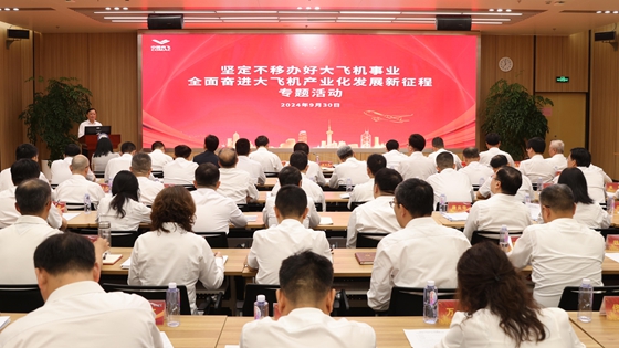 2024年9月30日,在习近平总书记会见C919大型客机项目团队代表并参观项目成果展两周年之际,中国商飞在设计研发中心举办“坚定不移办好大飞机事业 全面奋进大飞机产业化发展新征程”专题活动。本次活动的主要任务是深入贯彻落实习近平总书记关于大飞机事业重要指示精神,继续保持昂扬斗志,坚定不移推动习近平总书记交办的三大任务,坚定不移推动型号研制和产能提升取得新突破,坚定不移推动大飞机事业安全发展高质量发展。公司党委书记、董事长贺东风出席会议并讲话,党委副书记、董事谭万庚主持会议,党委常委魏应彪、沈波、戚学锋、于世海、罗兴平、李玲出席会议。